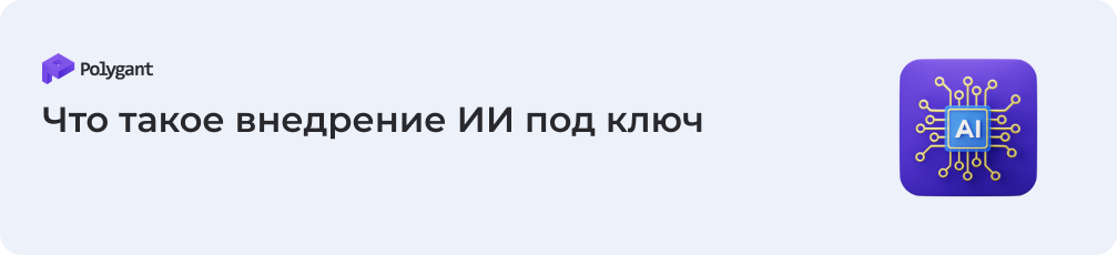 Внедрение ИИ под ключ — это комплексное решение, которое включает анализ задач компании, разработку и интеграцию ИИ-систем, обучение сотрудников и поддержку в работе.